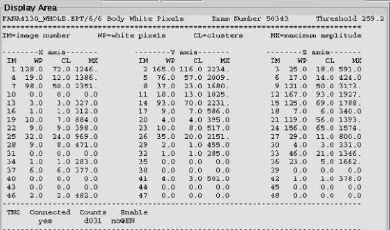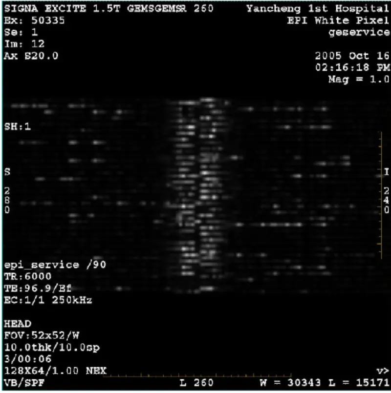 12. قم بتعطيل DD/TR في SSM. افصل كابل DD من جدار القلم (J72، J73، J74، J75، J75)، ومسح رأس البكسل الأبيض والجسم. والنتيجة هي أن تمريرة الرأس وفشل الجسم. لم يتم ضبط ملف الجسم، لذلك يمتص ملف الجسم الإشارة. وبالتالي فشل تمرير الرأس والجسم. من أجل التحقق من خصمنا، قم بتوصيل كابل التمديد بملف الرأس ووضع ملف الرأس خارج تجويف المغناطيس، وقم بمسح البكسل الأبيض للرأس. في الواقع، النتيجة هي فشل الرأس. أعد توصيل كابل DD واحد فقط في Pen Wall ومسح رأس وجسم البكسل الأبيض EPT. والنتيجة هي أن كل شيء فشل. تأكد من أن لوحة DD ولوحة التقسيم ليست هي السبب.